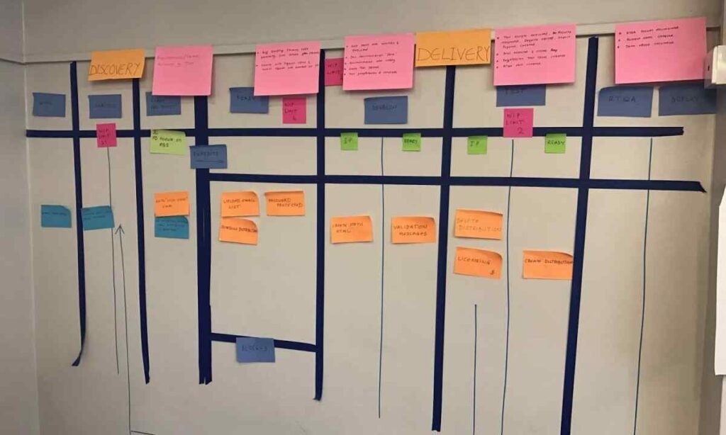 Дошка може бути фізичною (наприклад, з наліпками на стіні) або цифровою, у програмах як Trello, Jira, чи Asana.