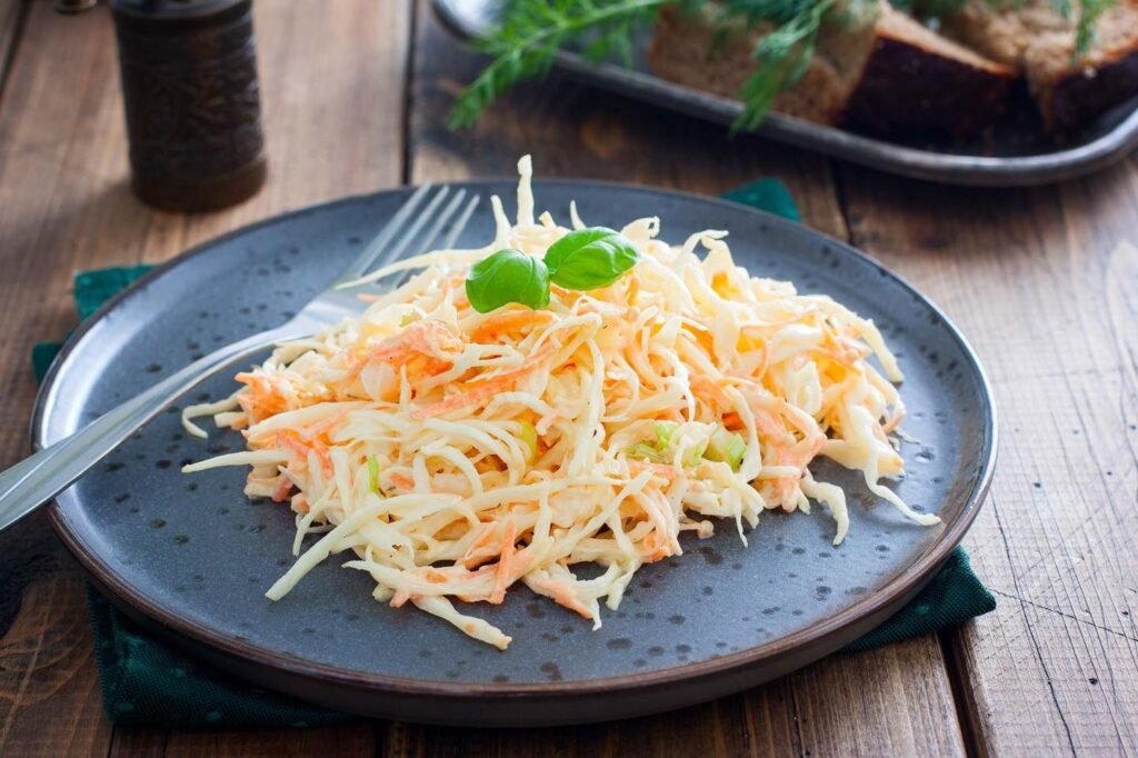 Коул слоу — це салат із капусти з соусом, який зазвичай містить майонез або оцет, і він є популярним у багатьох країнах.