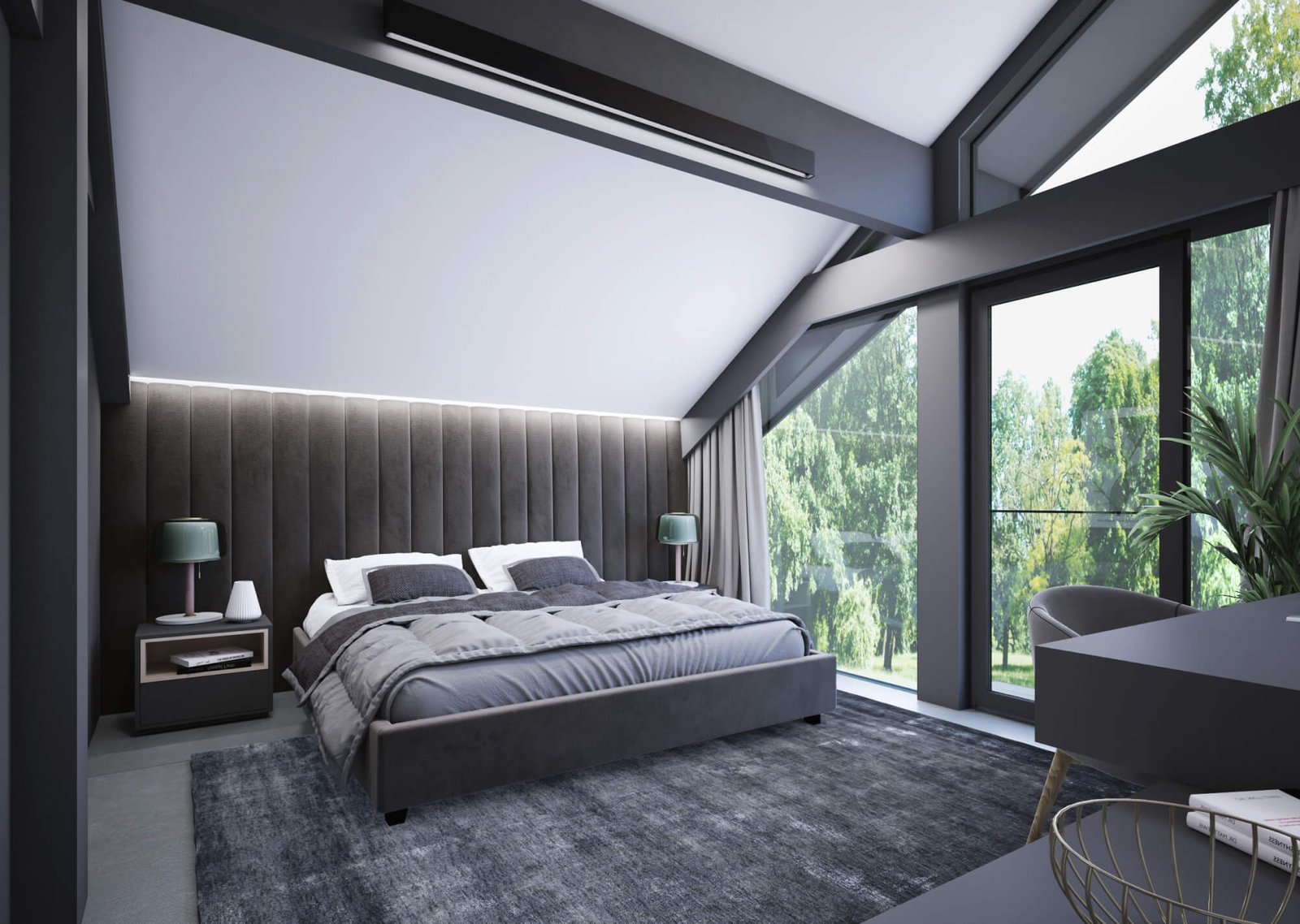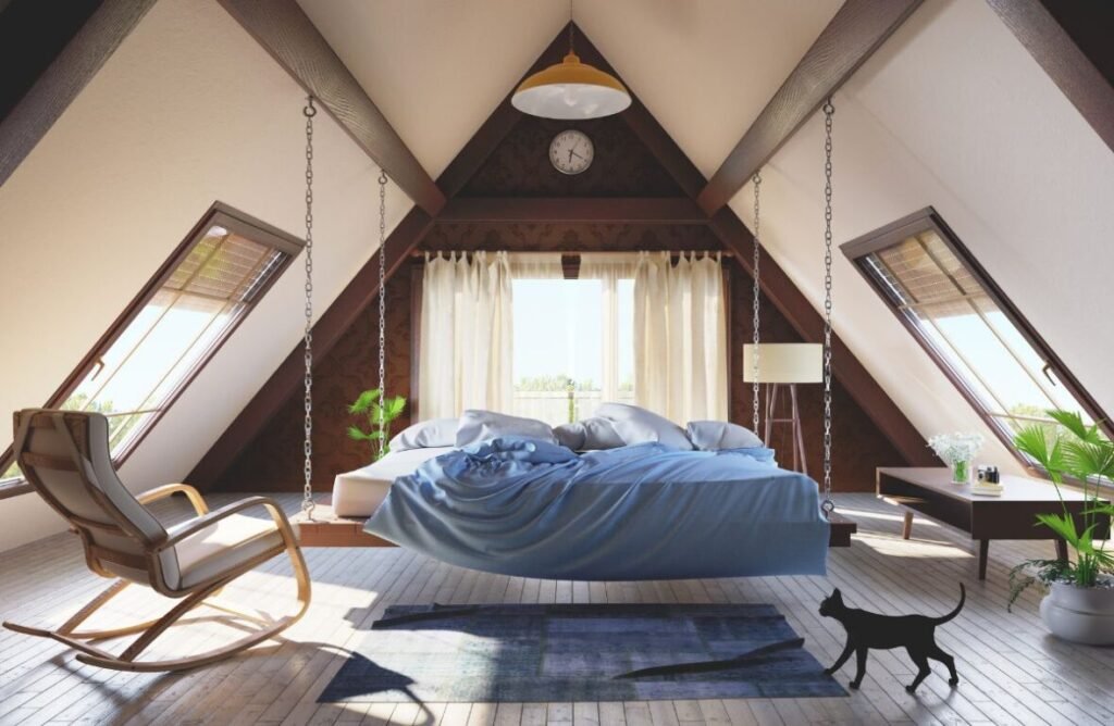 Мансарда ідеально підходить для спальні, адже вона зазвичай тиха і відокремлена від основних зон будинку.