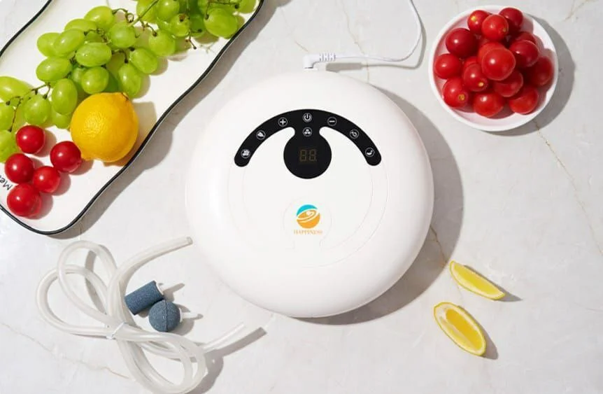 Озонатор може використовуватися для обробки фруктів, овочів, м’яса та риби, тому що він зменшує кількість бактерій і пестицидів, а також подовжує термін зберігання продуктів.