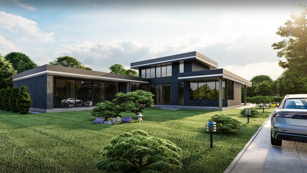 - Модерн — мінімалізм і великі панорамні вікна.