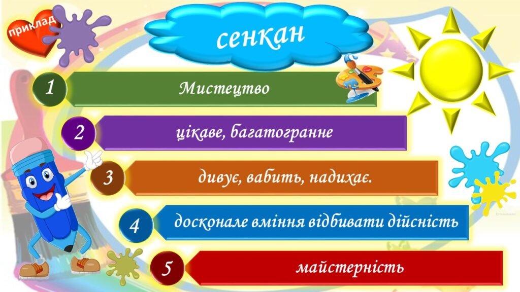 - Сприймайте сенкан як творчу гру, а не як завдання.